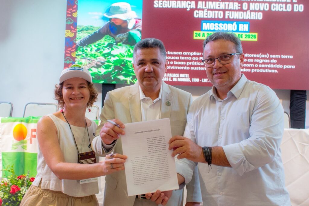 Na solenidade, o titular da Secretaria de Desenvolvimento Rural e Agricultura Familiar (Sedraf/RN), Alexandre Lima, e o coordenador nacional do Programa Nacional de Crédito Fundiário (PNCF), Hebert Rodrigues – que representou o Ministério do Desenvolvimento Agrário e Agricultura Familiar (MDA), entregaram e assinaram os seguintes documentos: contratos de aquisição de imóveis para agricultura familiar, um acordo de cooperação técnica entre os entes governamentais, além de lançarem o Edital de Subprojetos de Investimento Comunitário (SIC).
