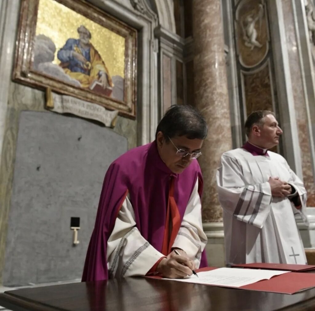 Também estiveram presentes o cardeal Mauro Gambetti, arcipreste da Basílica, e o arcebispo Diego Ravelli, mestre de cerimônias do Papa.