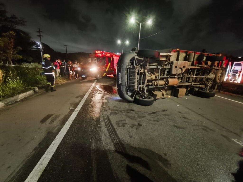 Na noite desta segunda-feira (26), por volta das 21h39, o Corpo de Bombeiros Militar do Rio Grande do Norte (CBMRN) foi acionado para atender a uma ocorrência de desencarceramento na BR-304, no sentido Macaíba, no município de Parnamirim. As informações iniciais indicavam o tombamento de um caminhão, com uma vítima presa às ferragens, em posição invertida sob a cabine do veículo.