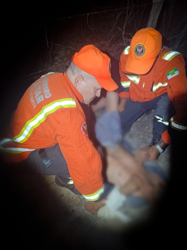 Durante o apoio à família na residência, um detalhe chamou a atenção dos militares: o cachorro da casa, chamado “Bolinha”, estava visivelmente inquieto. Percebendo o comportamento do animal, os bombeiros decidiram utilizá-lo como apoio na busca. Ao ser solto e acompanhado pela equipe, Bolinha conduziu os militares por um trajeto na mata até o local onde seu dono estava caído. O idoso foi encontrado consciente, porém com sinais de desidratação e cansaço extremo, resultado do longo período exposto ao ambiente. Após o resgate, ele recebeu os primeiros atendimentos ainda no local e foi conduzido ao hospital pela Unidade de Resgate do CBMRN para avaliação médica.