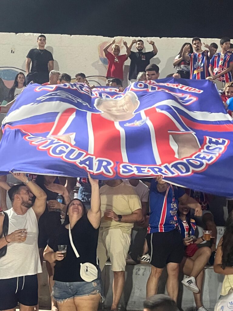 Durante a partida deste sábado (31), a Torcida Jovem do Poty prestou uma homenagem emocionante a Siderley Menezes, figura marcante da história do Potyguar Seridoense. Uma bandeira com a imagem do ex-presidente foi exibida nas arquibancadas, simbolizando o reconhecimento da torcida ao seu legado.