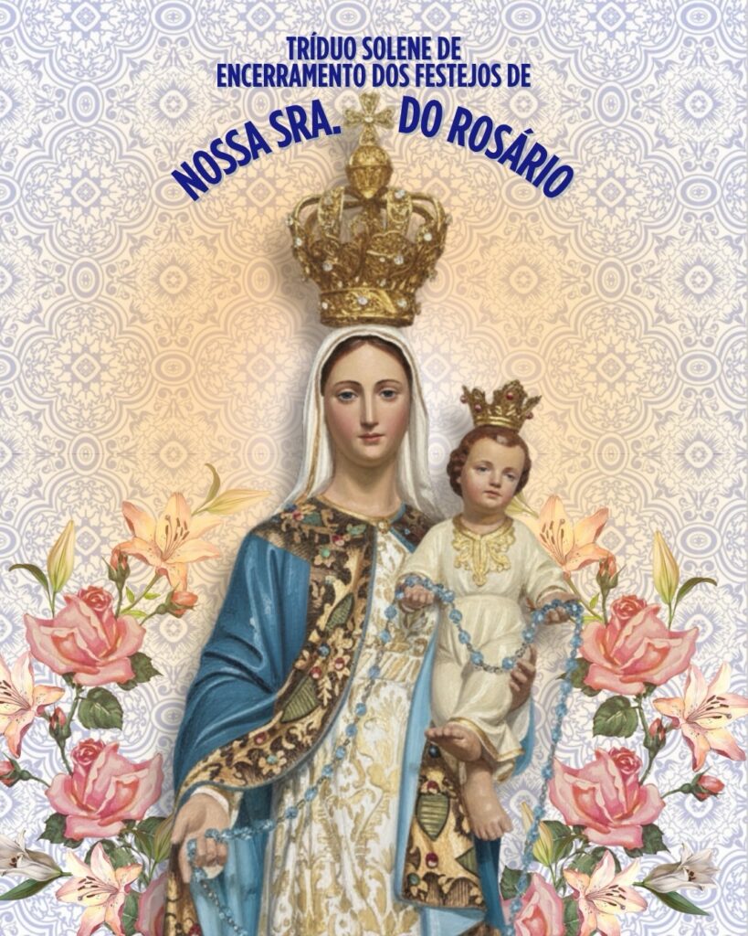 Dia do Senhor, dedicado à Senhora do Rosário • 16h30 – Recitação do Terço • 17h – Missa Solene, seguida de procissão luminosa pelas ruas do bairro Homenagem da Confraria de Nossa Senhora do Rosário • 18h30 – Bolo da Festa e bingo Responsáveis: Equipe da Festa