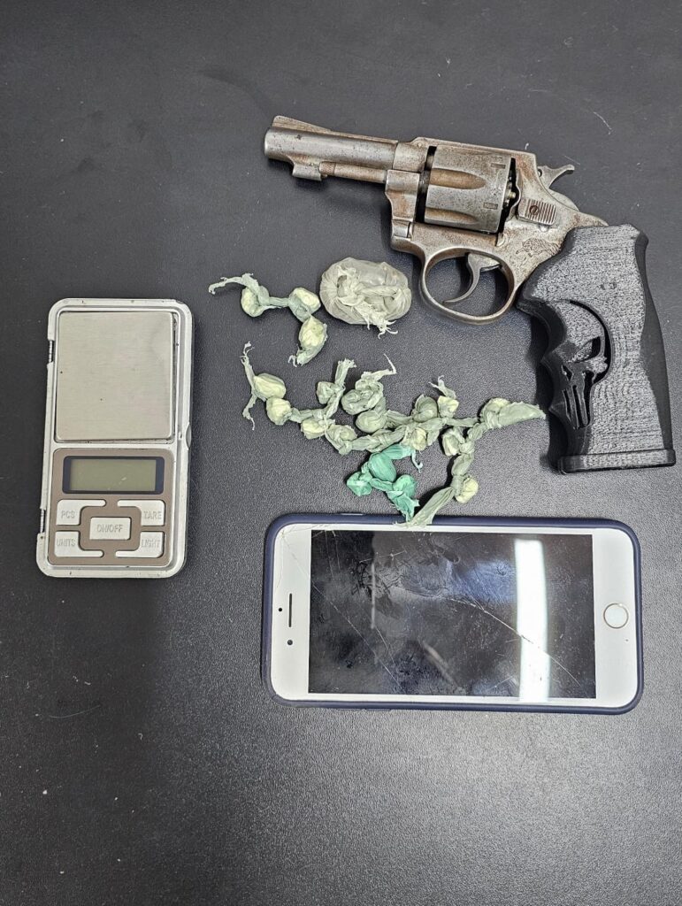 De posse das informações, a guarnição deslocou-se até o local indicado, onde constatou a veracidade da denúncia. Durante a ação, foram apreendidos entorpecentes diversos, uma balança de precisão e um revólver calibre .32.
