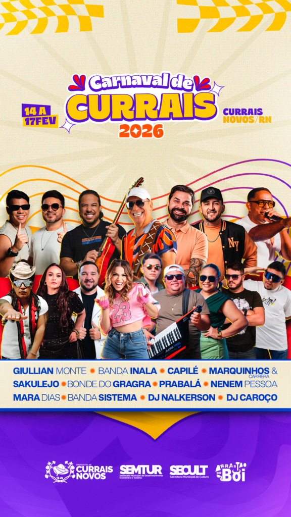 Para movimentar a cidade com uma agenda diversificada de atrações musicais, a Prefeitura de Currais Novos anuncia a programação oficial do Carnaval, contemplando diferentes estilos e públicos ao longo de quatro dias de festa. A programação foi pensada para garantir animação, segurança e momentos de lazer para toda a população.